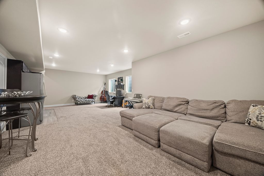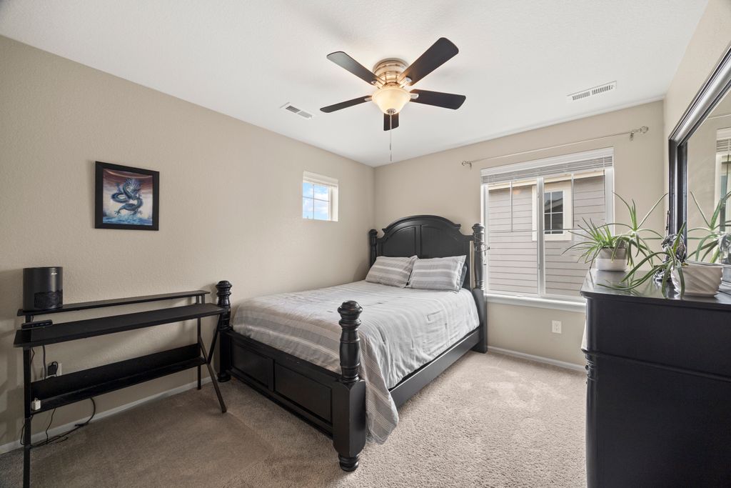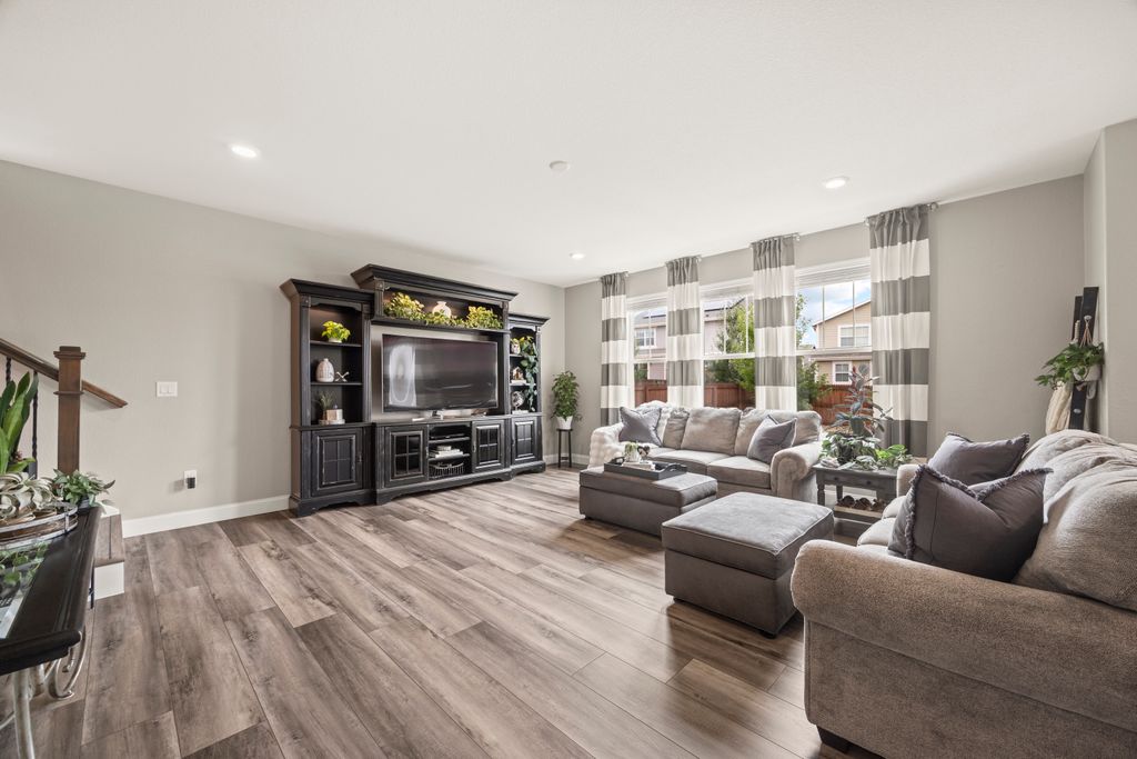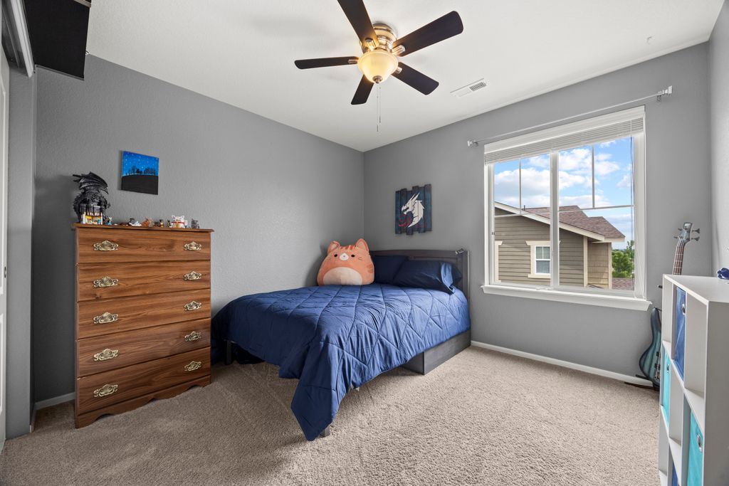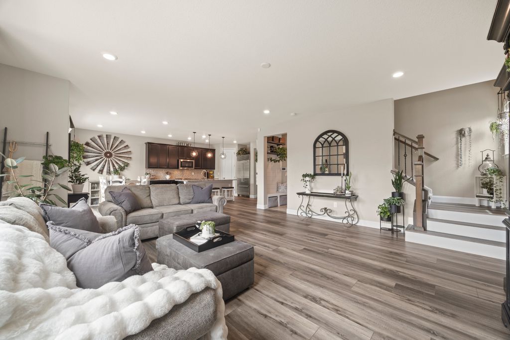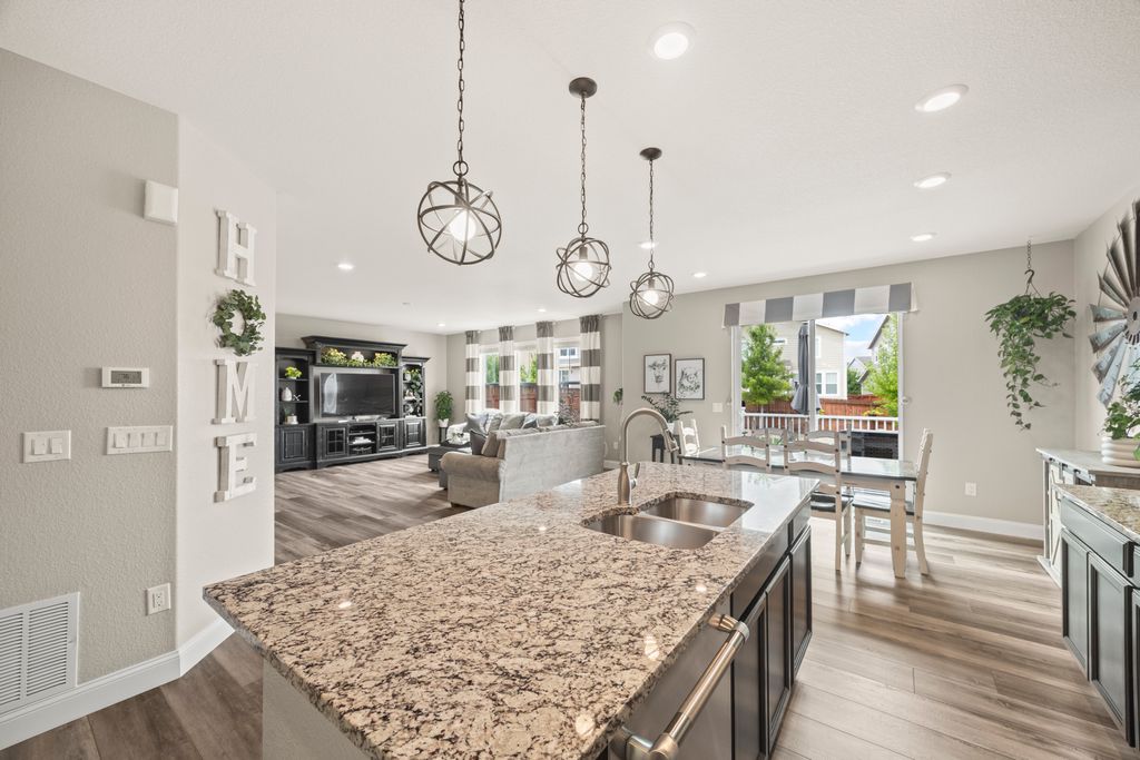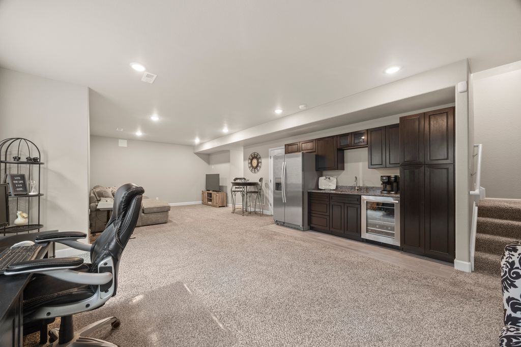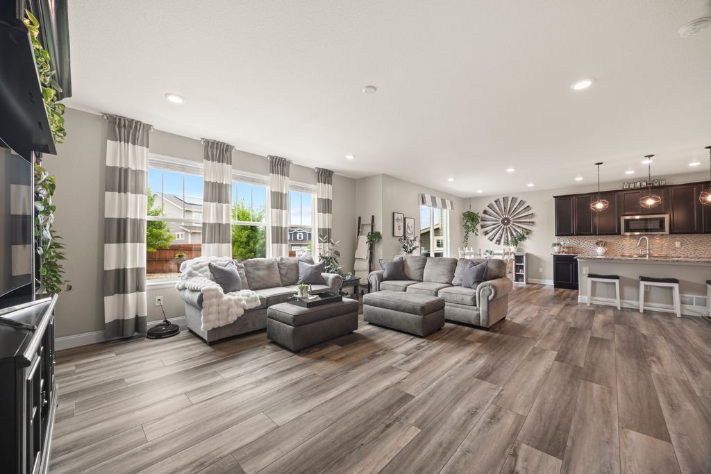 Welcome to 15155 Chicago Street, nestled in the desirable Sierra Ridge community of Parker. This beautifully appointed 4-bedroom, 4-bath home offers 3,139 total square feet of stylish and functional living space on an expansive lot designed for entertaining and everyday comfort. Step inside to find extra-wide vinyl plank flooring throughout the main level, complemented by designer touches and abundant natural light. The chef’s kitchen is a true standout, featuring high-end JennAir appliances, a luxurious built-in Sub-Zero refrigerator, a large island with bar seating and under-mount sink, slab granite countertops, and a corner walk-in pantry. The dining area and spacious great room flow seamlessly, perfect for gatherings. A powder room and a convenient mud bench complete the main level. Upstairs, you'll find four generously sized bedrooms, including a grand primary suite with a coffered ceiling, an updated five-piece ensuite bath with a walk-in shower, soaking tub, and a spacious walk-in closet. Three additional bedrooms, a full bath, and a large laundry room offer plenty of space and convenience. The finished basement is an entertainer’s dream with a full bar area, complete with a full-size fridge and beverage fridge, a large rec room/media room, a half bath with a utility sink, and a generous storage room. Outdoor living shines with a composite deck, cement patio, large lawn, several trees and gas line ready for your grill and fire pit. Located in the vibrant Sierra Ridge community, residents enjoy access to multiple parks, a basketball court, playground, clubhouse, and a community pool. Additional highlights include a whole home humidifier, active radon mitigation system, overhead garage storage racks, raised garden beds, and an inviting covered front porch. Don’t miss the opportunity to own this beautifully finished home in one of Parker’s most desirable neighborhoods—truly a model home in both style and presentation!
