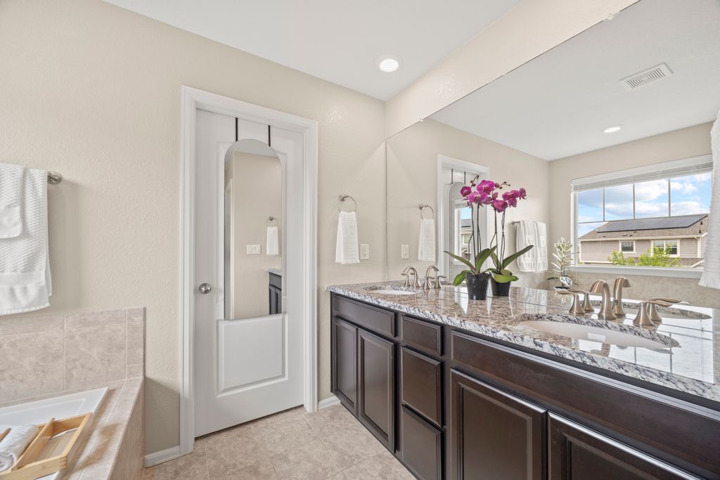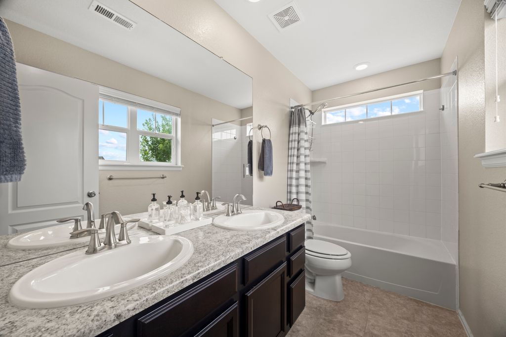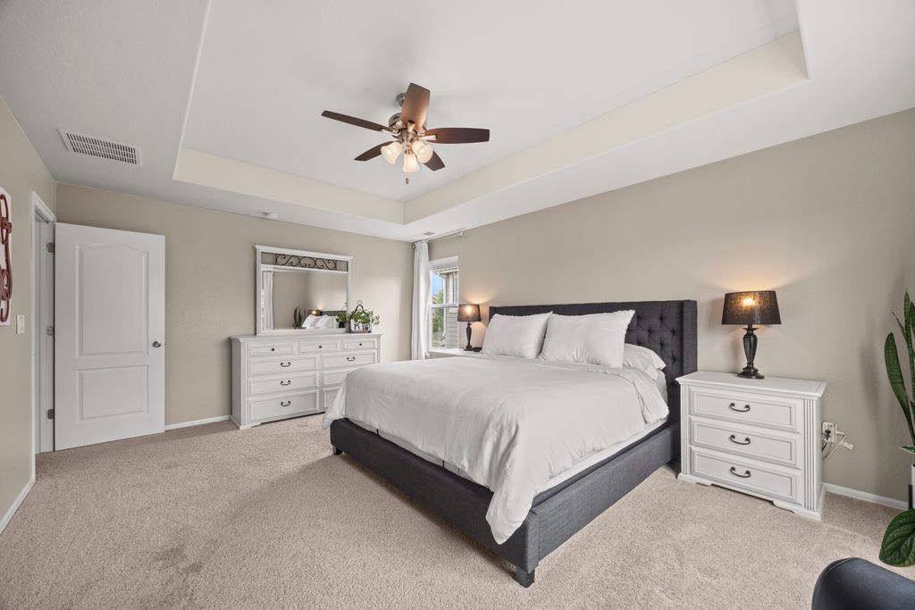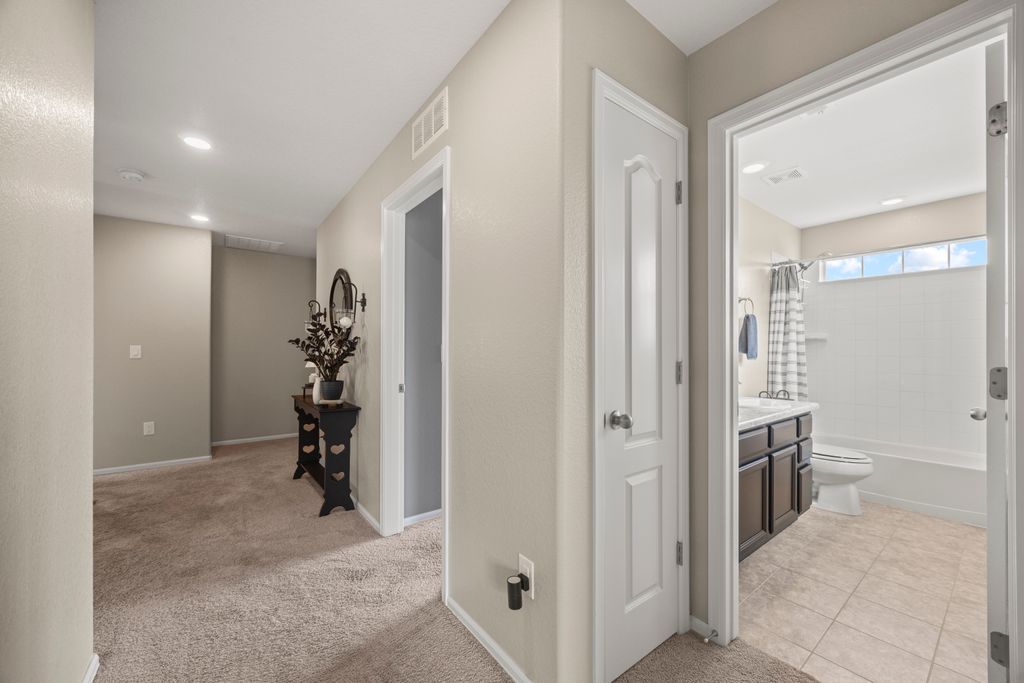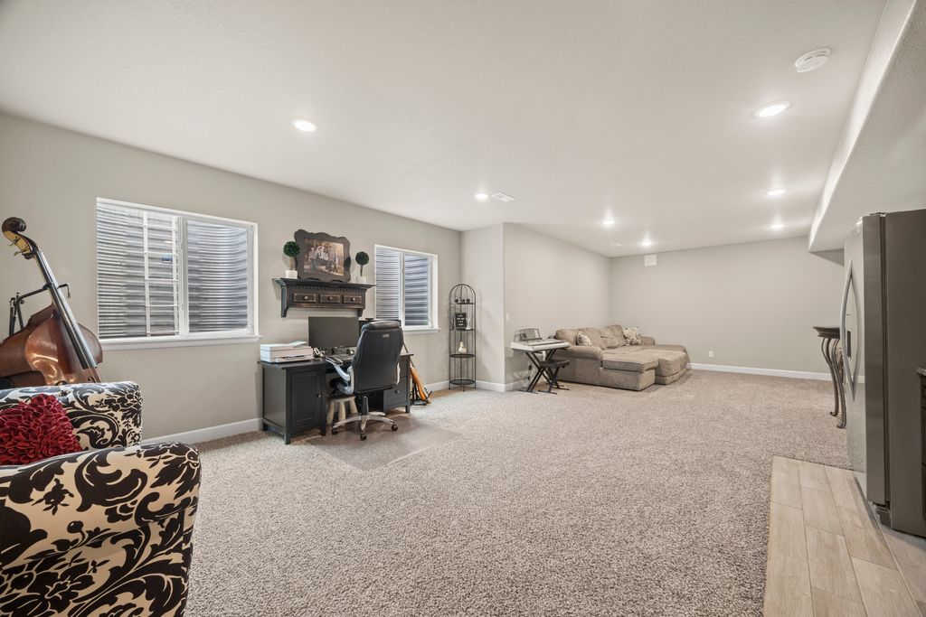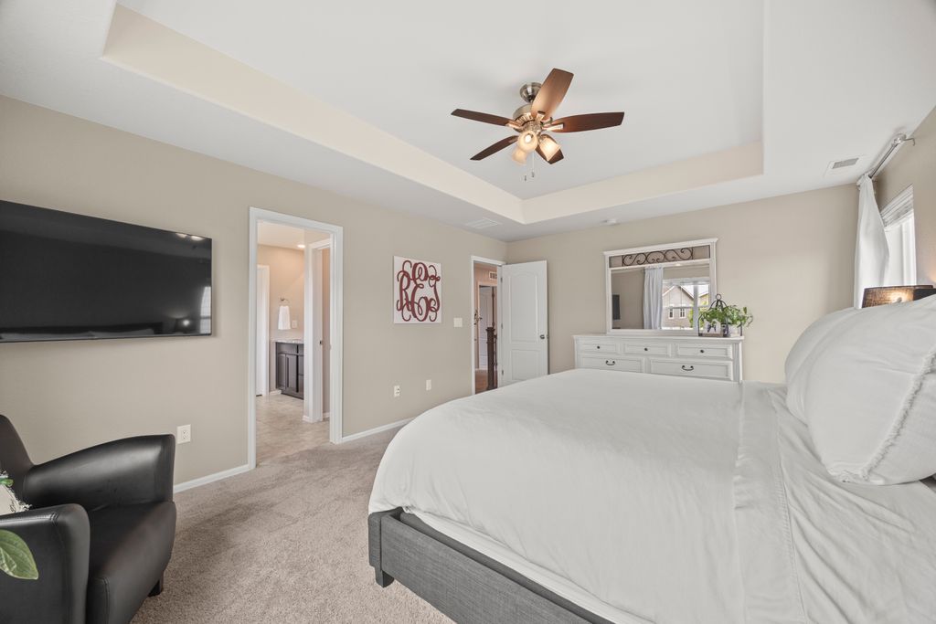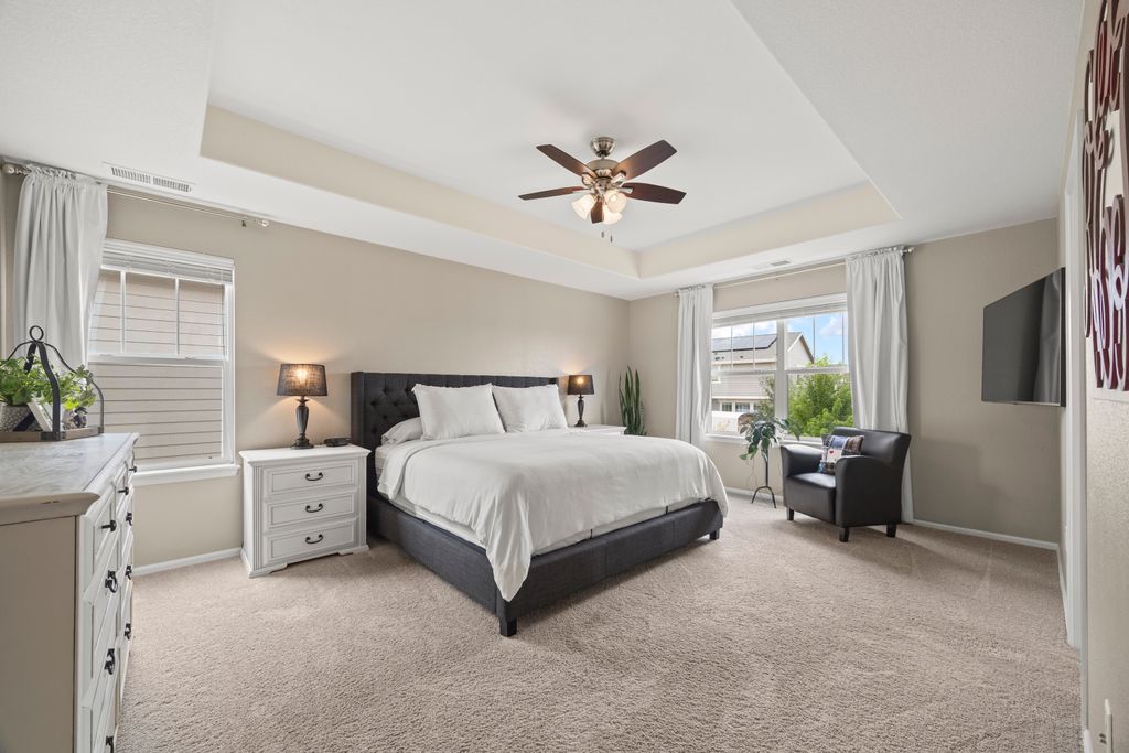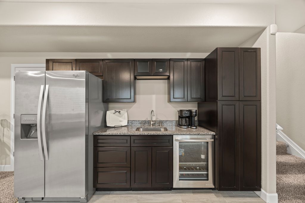 Welcome to 15155 Chicago Street, nestled in the desirable Sierra Ridge community of Parker. This beautifully appointed 4-bedroom, 4-bath home offers 3,139 total square feet of stylish and functional living space on an expansive lot designed for entertaining and everyday comfort. Step inside to find extra-wide vinyl plank flooring throughout the main level, complemented by designer touches and abundant natural light. The chef’s kitchen is a true standout, featuring high-end JennAir appliances, a luxurious built-in Sub-Zero refrigerator, a large island with bar seating and under-mount sink, slab granite countertops, and a corner walk-in pantry. The dining area and spacious great room flow seamlessly, perfect for gatherings. A powder room and a convenient mud bench complete the main level. Upstairs, you'll find four generously sized bedrooms, including a grand primary suite with a coffered ceiling, an updated five-piece ensuite bath with a walk-in shower, soaking tub, and a spacious walk-in closet. Three additional bedrooms, a full bath, and a large laundry room offer plenty of space and convenience. The finished basement is an entertainer’s dream with a full bar area, complete with a full-size fridge and beverage fridge, a large rec room/media room, a half bath with a utility sink, and a generous storage room. Outdoor living shines with a composite deck, cement patio, large lawn, several trees and gas line ready for your grill and fire pit. Located in the vibrant Sierra Ridge community, residents enjoy access to multiple parks, a basketball court, playground, clubhouse, and a community pool. Additional highlights include a whole home humidifier, active radon mitigation system, overhead garage storage racks, raised garden beds, and an inviting covered front porch. Don’t miss the opportunity to own this beautifully finished home in one of Parker’s most desirable neighborhoods—truly a model home in both style and presentation!